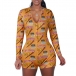 Sexy V-neck Long Sleeve Slim Fit Printed Romper
