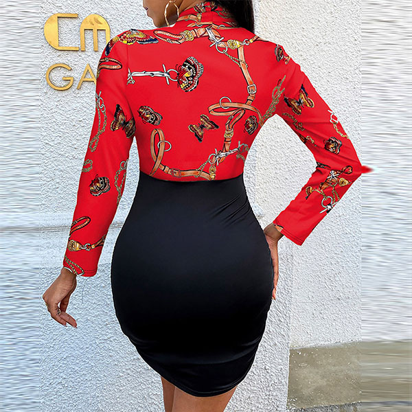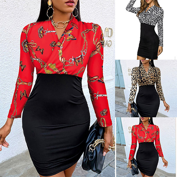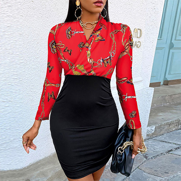 A last-minute party sparking your "I have nothing to wear" stress? Your worries will go out of the window with the help of this dress. The printed spliced details will offer you a more eye-catching look. Finished with long sleeve,v-neck and a fit silhouette,this dress also can showcase your slender figure.