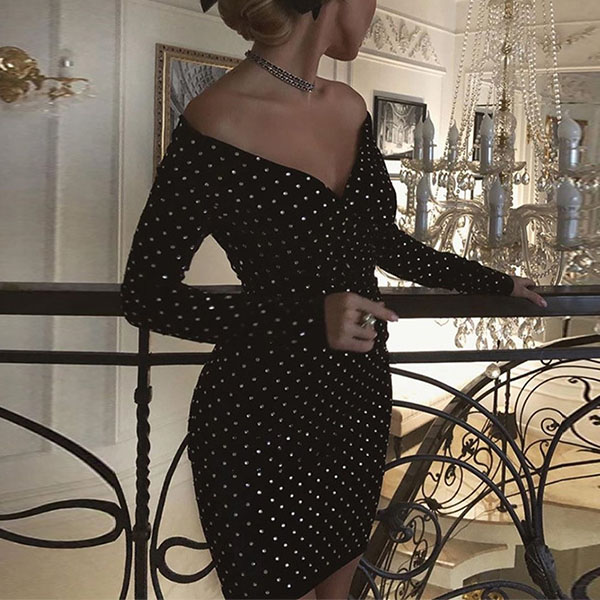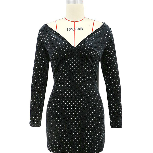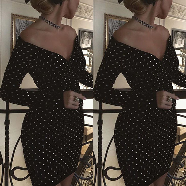 Sexy V-neck Long Sleeve Slim Fit Sequin Spliced Dress