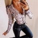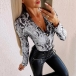 Sexy V-neck Long Sleeve Snakeskin Printed Bodysuit
