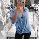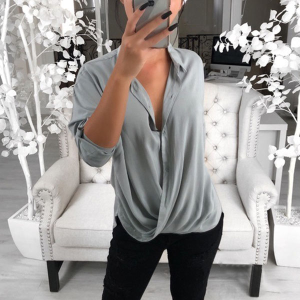 Sexy V-neck Long Sleeve Solid Color Blouse
