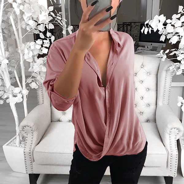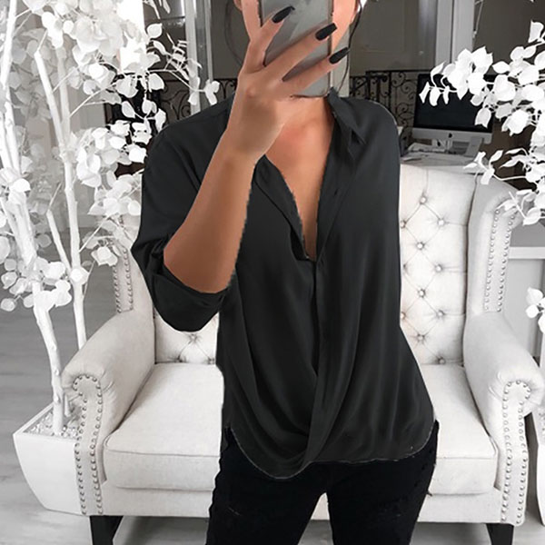 For a working look that full of stylish and flirty vibes,you can just turn to this blouse for help. Solid color style,the v-neck design will enhance your feminine appeal,while its soft and breathable fabric can ensure the comfy. All-match design allows to be matched with different style bottoms.