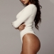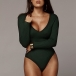 Sexy V-neck Long Sleeve Solid Color Bodysuit