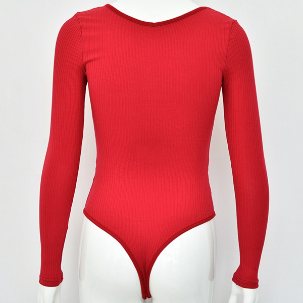 Your sexy and seductive curve can have a full display in this bodysuit. Solid color style,finished with long sleeve and v-neck design,this piece not only can ensure the comfy,but also can exude your sexy and flirty side. Try to match with your high waist bottoms to finish a charming look!