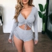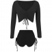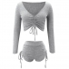 Sexy V-neck Long Sleeve Solid Color Crop Top + Shorts Two-piece Set