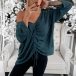Sexy V-neck Long Sleeve Solid Color Drawstring T-shirt
