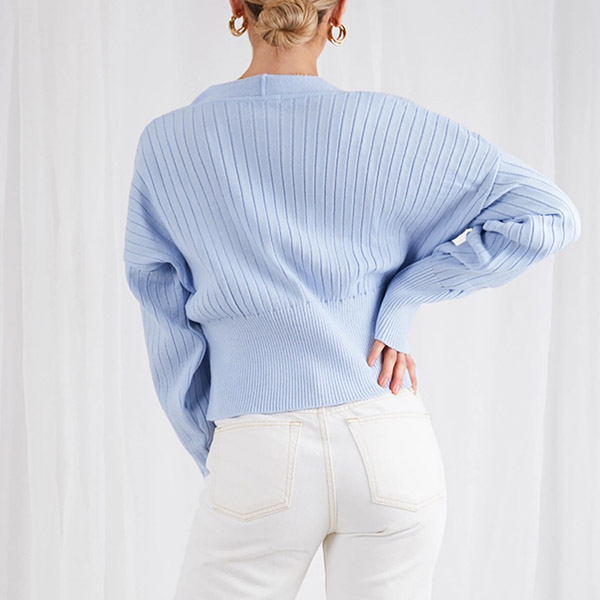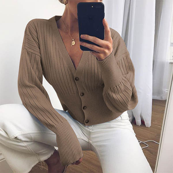 Sexy V-neck Long Sleeve Solid Color Knit Cardigan