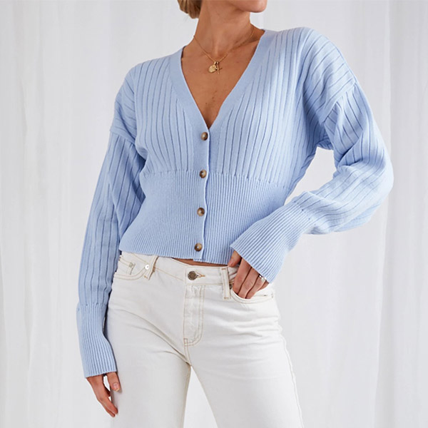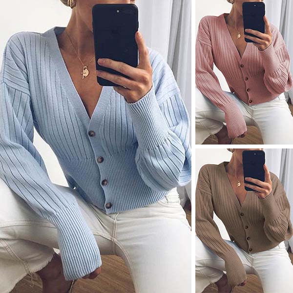 This knit cardigan can be a perfect layer to keep you warm when the days get cold. Solid color style,finished with long sleeve,v-neck,front-button and short-style design,this little piece can offer you different matching styles. Matching with a tight dress would be a good idea.