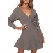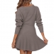 Sexy V-neck Long Sleeve Solid Color Knit Dress