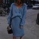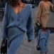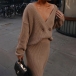 Sexy V-neck Long Sleeve Solid Color Knit Top + Skirt Two-piece Set