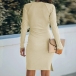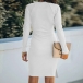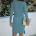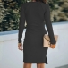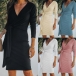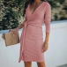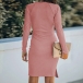 Sexy V-neck Long Sleeve Solid Color Lace-up Slim Fit Dress