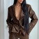Sexy V-neck Long Sleeve Solid Color Loose Blazer Jakcet