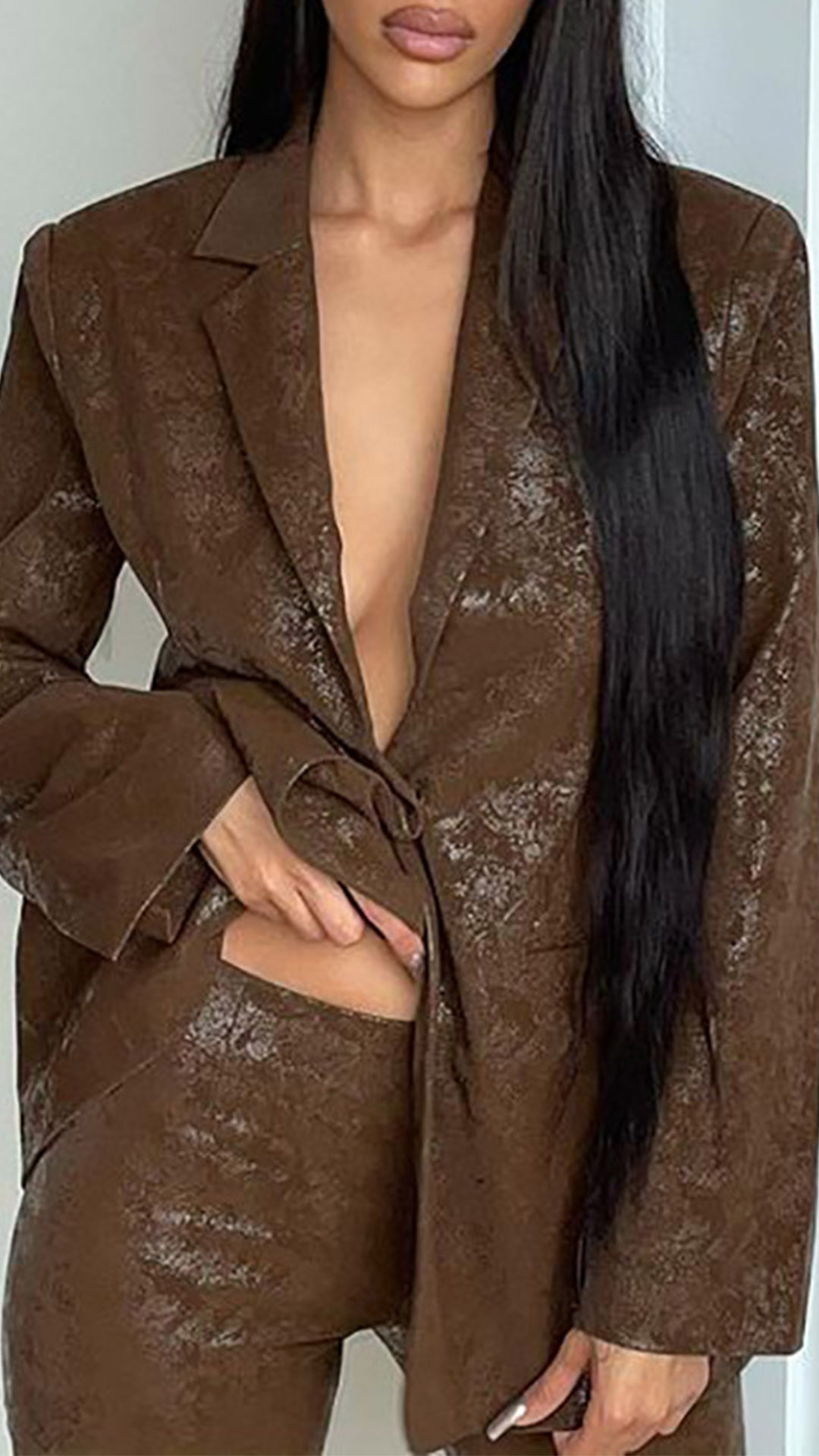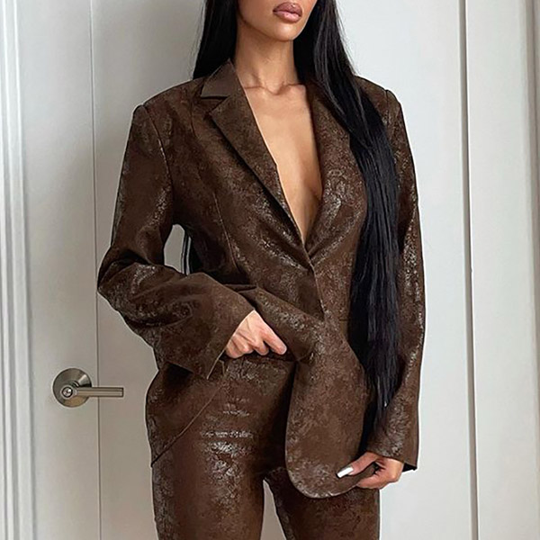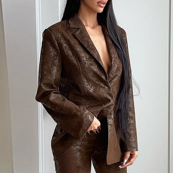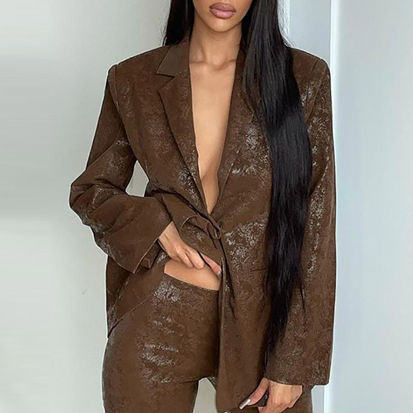 For your working occasions,this blazer would be your wise choice. Solid color style,finished with long sleeve,v-neck and a loose silhouette,this piece can keep the comfy as well as maintain your personality. Teaming with the matching pants can crop top would be offer you a sassy and flirty look.