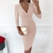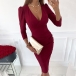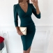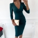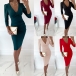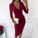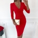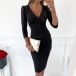 Sexy V-neck Long Sleeve Solid Color Slim Fit Dress