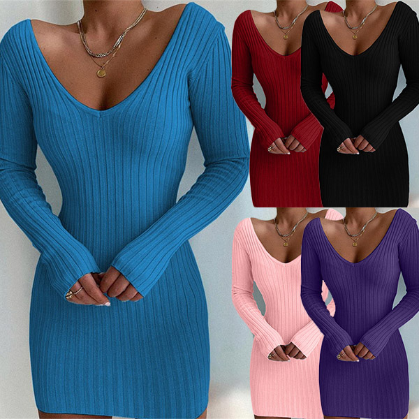 Combines of simple,sassy and flirty sense,this dress is worth to be your wardrobe staple. Boasts a solid color,the v-neck design can enhance your feminine appeal,while the tight silhouette design can better showcase your slender figure You can match it with your jackets or overcoats in these cold days.