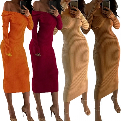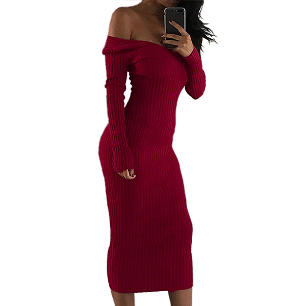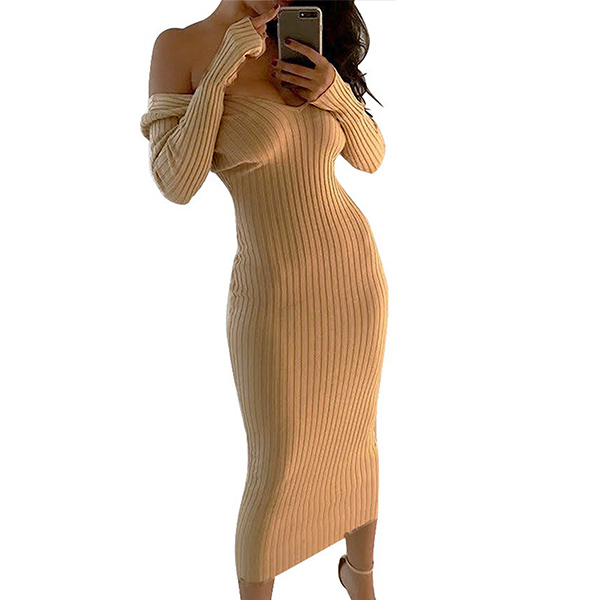 For these spring and autumn days,this knit dress can easily strike your mind. Solid color style,the fit silhouette design can showcase your slender figure,while the v-neck design will enhance your charming feminine appeal. You can wear it alone or match with your overcoats.