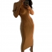 Sexy V-neck Long Sleeve Solid Color Slim Fit Dress