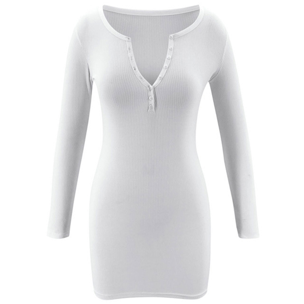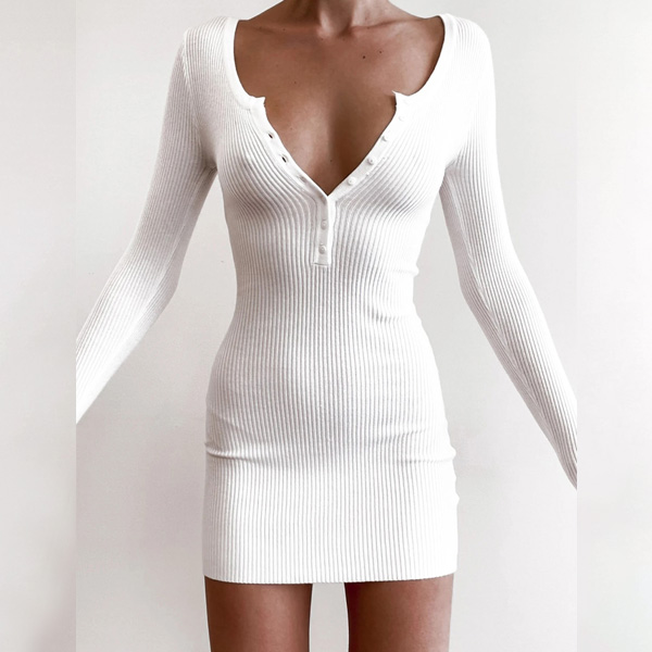 This dress comes with a solid color,the solid color tone design makes it look simple,stylish yet generous,while the v-neck and tight silhouette design can enhance your feminine appeal as well as showcase your slender figure. This is a dress which is perfect fit for the spring,autumn and winter. So why not buy one?