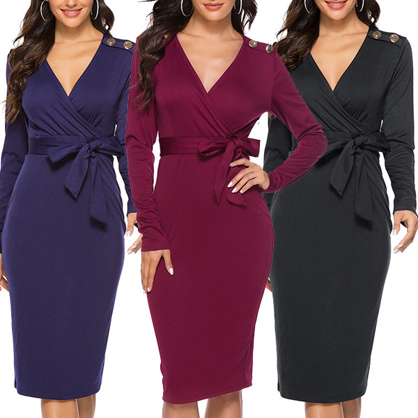 Flaunt your elegant and charming style with a well-tailored number and this delicate dress makes for the perfect example. Solid color style,the v-neck design can make you look sexy and flirty,while the fit silhouette design will portray your slender figure. Save this wonderful dress for the parties and gatherings.