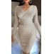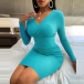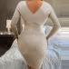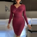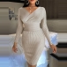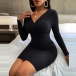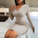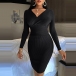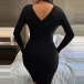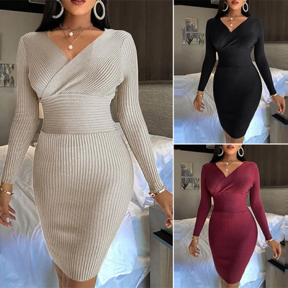 Sexy V-neck Long Sleeve Solid Color Slim Fit Knit Dress