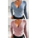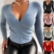 Sexy V-neck Long Sleeve Solid Color Slim Fit Knit Top