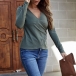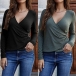 Sexy V-neck Long Sleeve Solid Color Slim Fit T-shirt