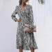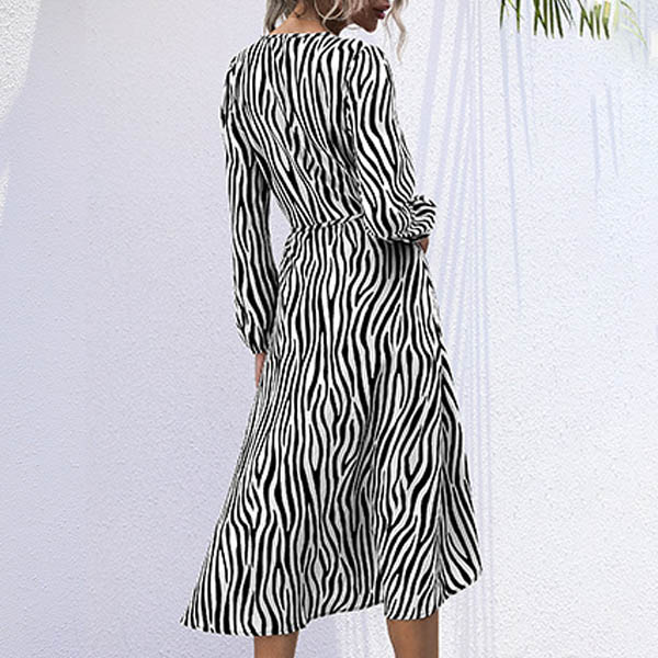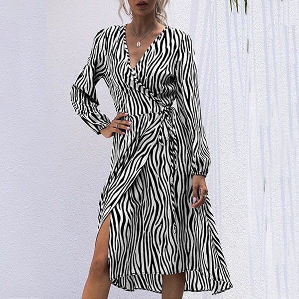 Sexy V-neck Long Sleeve Striped Dress