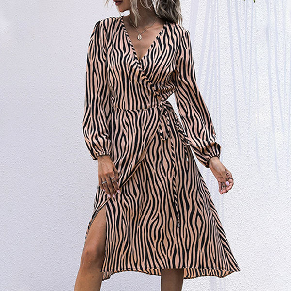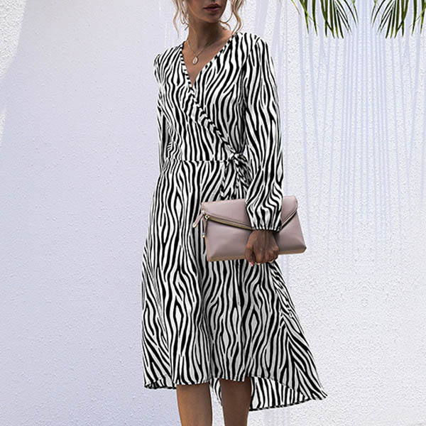 Wanna a proper dress for your daytime out and night dating? Then make your eyes focused on this dress. The stripe element design makes this piece look so stylish and attractive,while the v-neck design will enhance your feminine appeal. Dress it up with your favourite heels for a beautiful look.