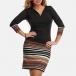 Sexy V-neck Long Sleeve Striped Spliced Slim Fit Dress
