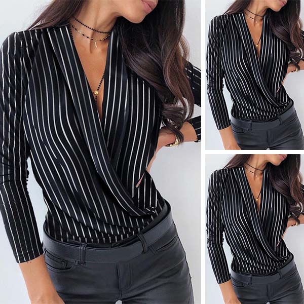 Combines of style and charm,this wonderful top is worth to arouse your attention. Stripe element design makes this piece look so stylish and popular,while the v-neck design can enhance your feminine appeal. Definitely,you can trust in this piece to boost your entire charm.