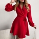 Sexy V-neck Long Sleeve Tie-belt Printed Dress