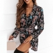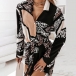 Sexy V-neck Long Sleeve Tie-belt Printed Shirt Dress