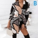 Give your wardrobe an update by adding this shirt dress. The chic printed details make it look so eye-catching,while the v-neck and tie-belt design will exude its sassy and flirty side. No matter for your busy workdays or weekend out with your friends,this versatile dress can easily strike your mind.