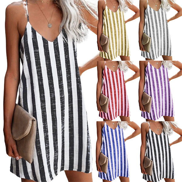 Crafted from soft and breathable fabric,with a loose silhouette design,this dress definitely can give you a cool and comfortable day. And the stripe element design will make it look more stylish and attractive. Sling style,with backless design,this dress also can lend you a dash of sexy and flirty vibes. Your perfect choice in these sun-soaked summer days.