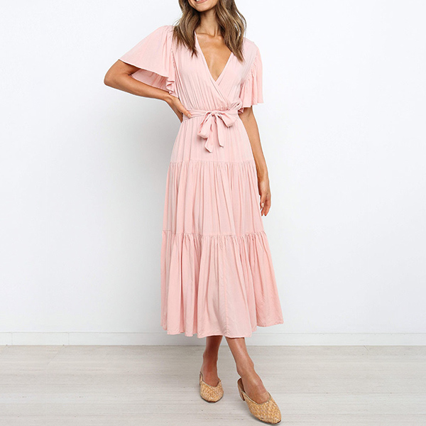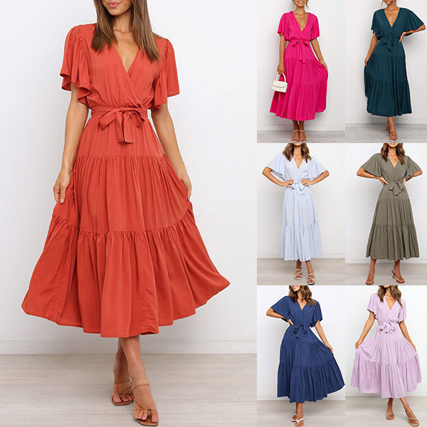 When you don't know what to wear for your dinner dates and weekend gatherings,you can just make your eyes focused on this piece. Solid color style,the v-neck and lotus sleeve design make this piece full of sweet and charming feminine appeal. You just need to match with your sexy heels,then you can look beautiful enough!