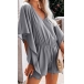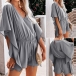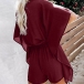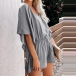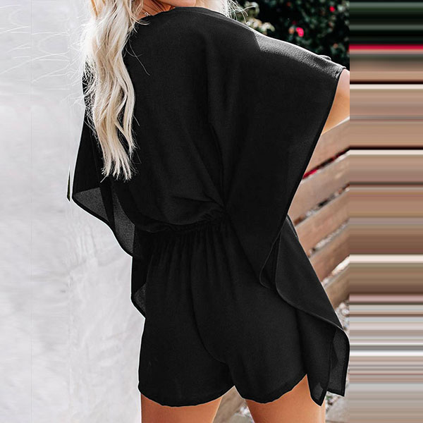 Sexy V-neck Lotus Sleeve High Waist Solid Color Romper