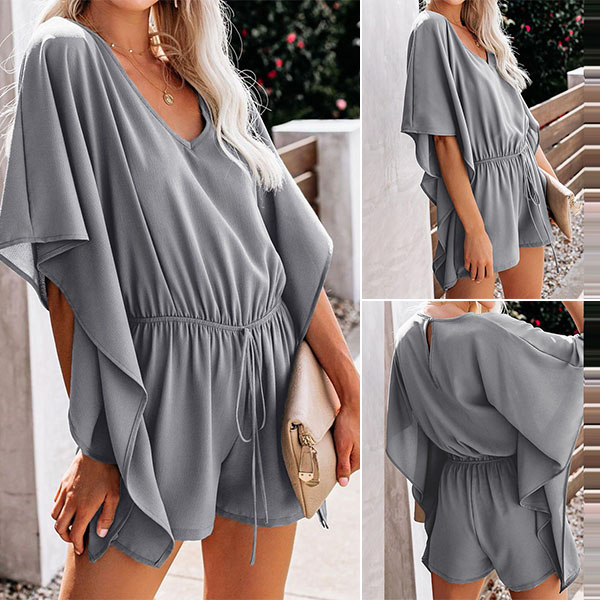 This romper is the one that will effortlessly enhance your level of stylish. That's why we suggest it to your. Solid color style,the unique lotus sleeve design is the highlight,which can help you draw more attention. Comes with a solid color,the high waist with drawstring design can better showcase your figure. Attracted? Then buy one!