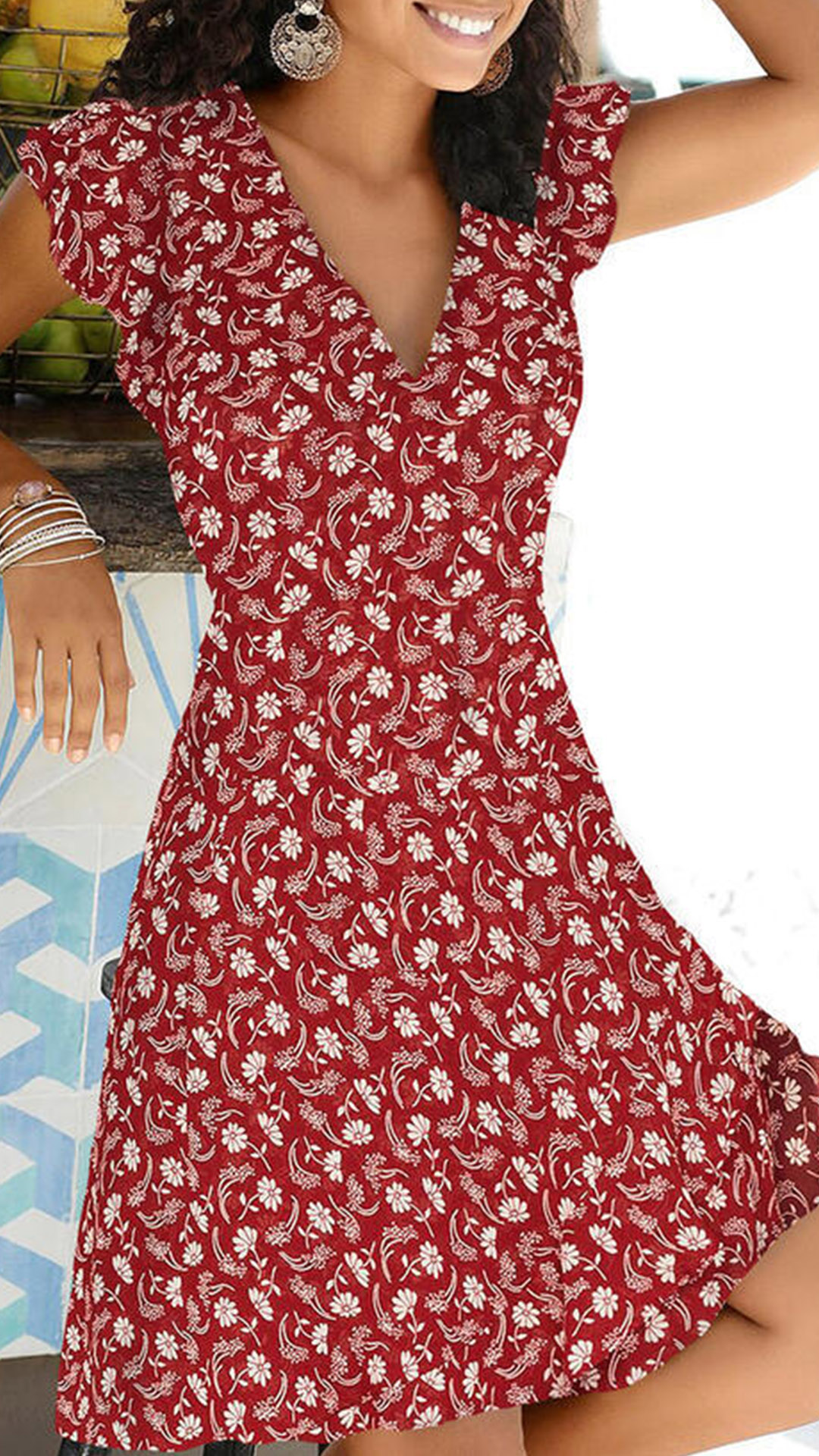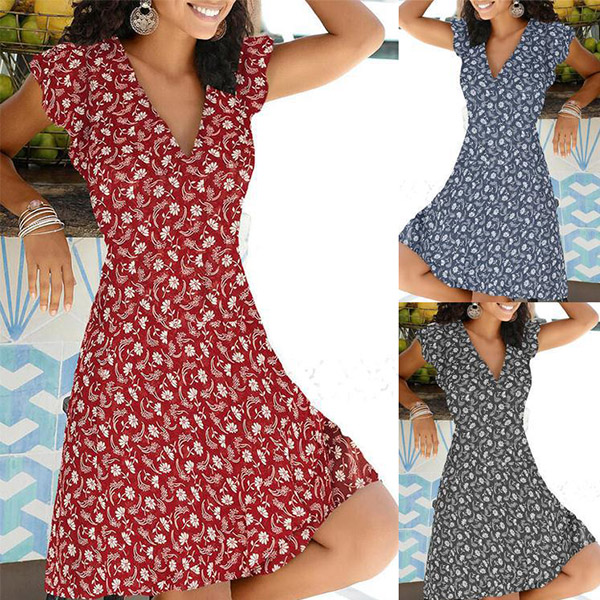 Greet the sunny weekend with a relaxed piece such as this dress. It features vibrant floral print details,the v-neck and lotus sleeve design will exude your charming feminine appeal. Crafted from soft and breathable fabric,this dress also can ensure you a comfortable day. Try to match with your favourite sandals to start your wonderful day!