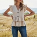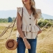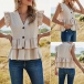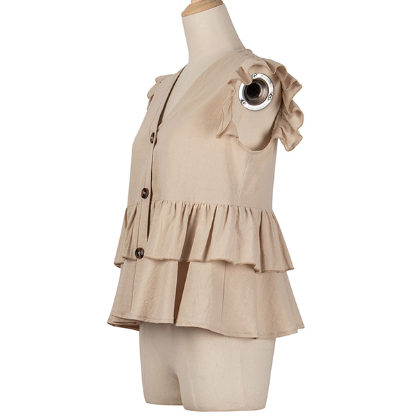 Sexy V-neck Lotus Sleeve Single-breasted Solid Color Top