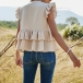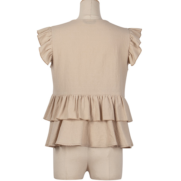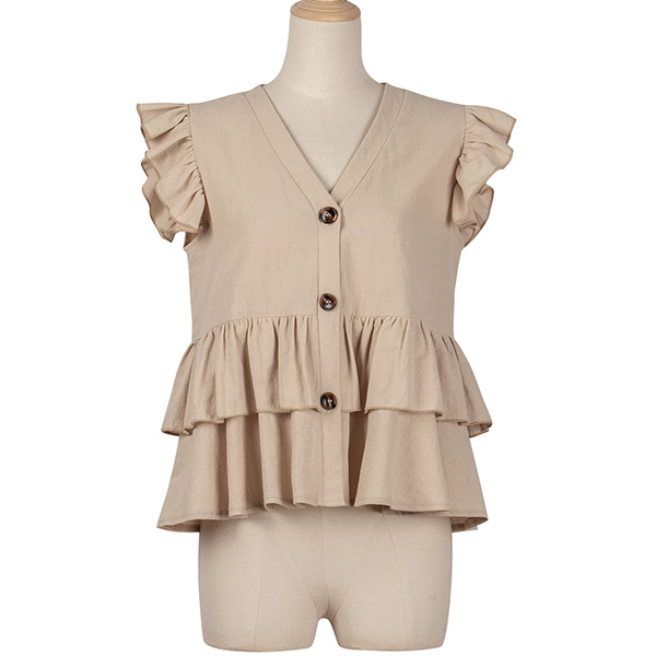 Attracted by this chic top at your first sight? Then invite it to your wardrobe ensemble. Solid color style,the v-neck,lotus sleeve,single-breasted and ruffle hem design make this pi8ece look so stylish and attractive. Try to match with a high waist pants to finish a charming daily look.