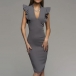 Sexy V-neck Lotus Sleeve Solid Color Slim Fit Dress