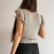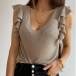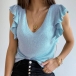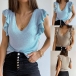 Wanna try a different style top? Then you can have a try this knit piece. Solid color tone design makes it look simple yet stylish,while the v-neck and lotus sleeve design will lend you a dash of flirty and sweet vibes. All-match design allows to be matched with different style bottoms. So why not invite this piece to your wardrobe?