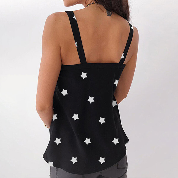 As for these sun-soaked summer days,this sling top is worth to be your wardrobe staple. The pentagram printed details make this piece look so eye-catching,while the v-neck and sling design will offer you a sexy and flirty look. Try to match with your shorts to enjoy your summer days.