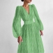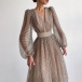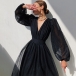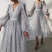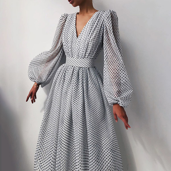 Sexy V-neck Puff Sleeve High Waist Dots Printed Party Dress