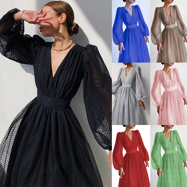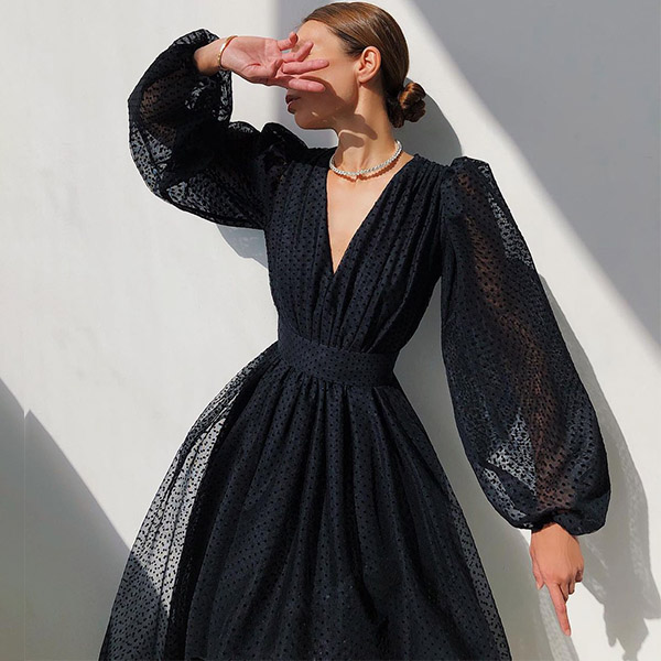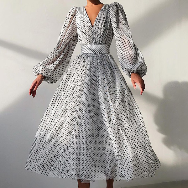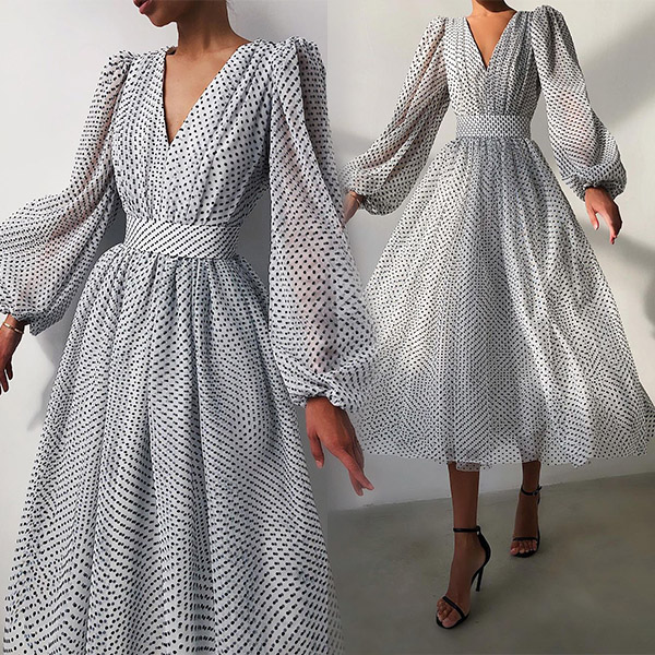 When you don't know what to wear for your night dating or weekend gatherings,you can just make your eyes focused on this little stunner. The deep v-neck and puff sleeve design make this piece look so flirty and stunning,while the dots printed details will lend you a dash of playful vibes. Dress it up with your sexy heels and elegant clutch for a stunning party look!