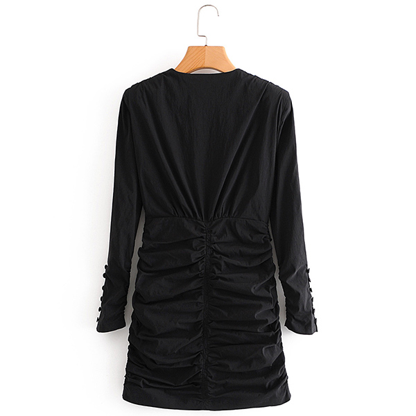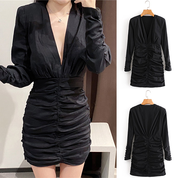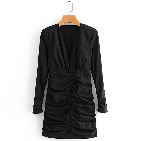 This dress must be your favorite if you want to be look thin and tall. The style is not very complicated, but black color has an innate sense of complexity and mystery. The design of V-neck can beautify the lines of face and chest. The dress is just the right length which can showcase your perfect figure.