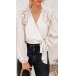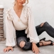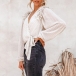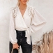 At your first sight,you would be attracted by this sassy and flirty chiffon top. The v-neck design can enhance your feminine appeal,while the ruffle and knotted hem design will further enhance its entire charm. We suggest you matching with a high waist pants to achieve for a fashionable and charming dress up.