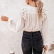 Sexy V-neck Puff Sleeve Knotted Hem Ruffle Chiffon Top