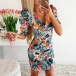 Sexy V-neck Puff Sleeve Slim Fit Printed Dress