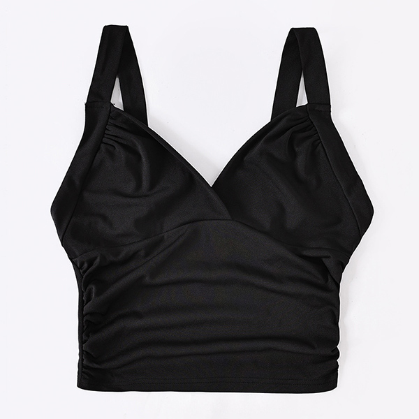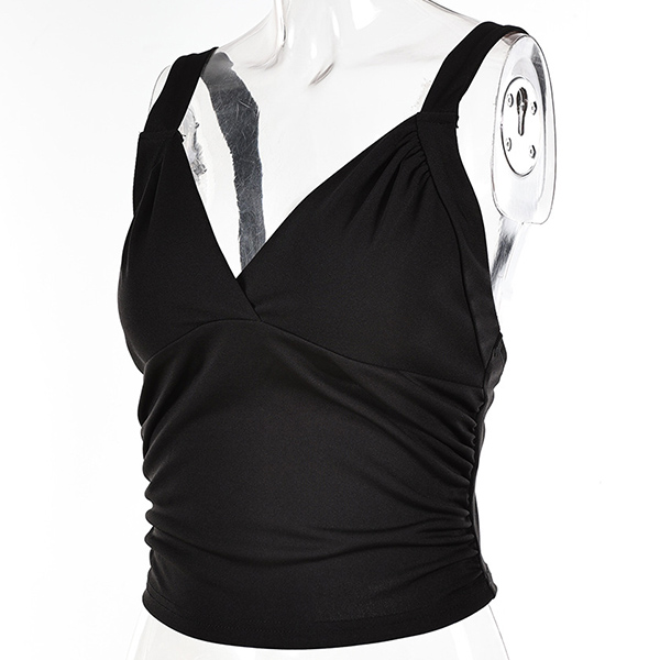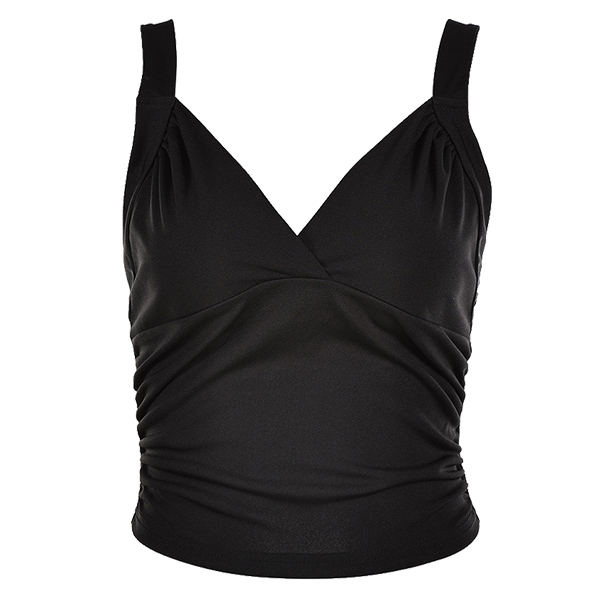 This cami shirt featuers a plunging V-neck design with ruched detailing for a sexy and flattering look.